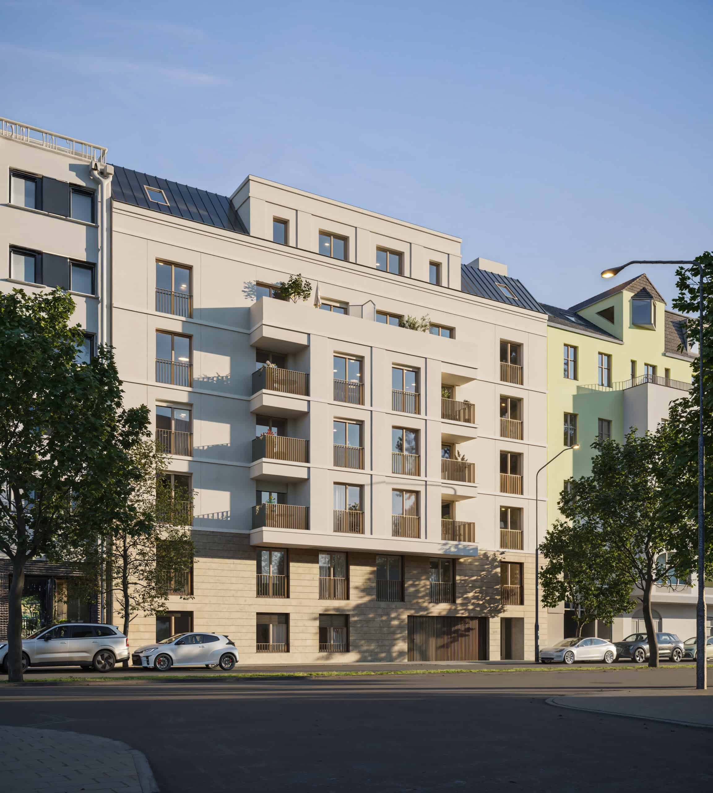 Die ersten Sonnenstrahlen erleuchten die Berliner Straße und das Bayerische Viertel. Zwischen charmanten Altbauten und modernen Wohnhäusern rascheln die Blätter der Robinien und Spitz-Ahornbaume und der Duft von frischem Kaffee liegt in der Luft. Nachmittags füllt sich die Straße mit Stimmen und Alltagsgeschichten– hier trifft Berliner Geschichte auf entspanntes, urbanes Leben. Kleine Geschäfte, Boutiquen, Galerien und Wochenmärkte prägen das Bild und wenige Schritte entfernt laden grüne Plätze und ruhige Ecken zum Verweilen ein. So empfängt Sie das Bayerische Viertel – charmant, kultiviert und mit einem besonderen Sinn für das Schöne im Alltäglichen.